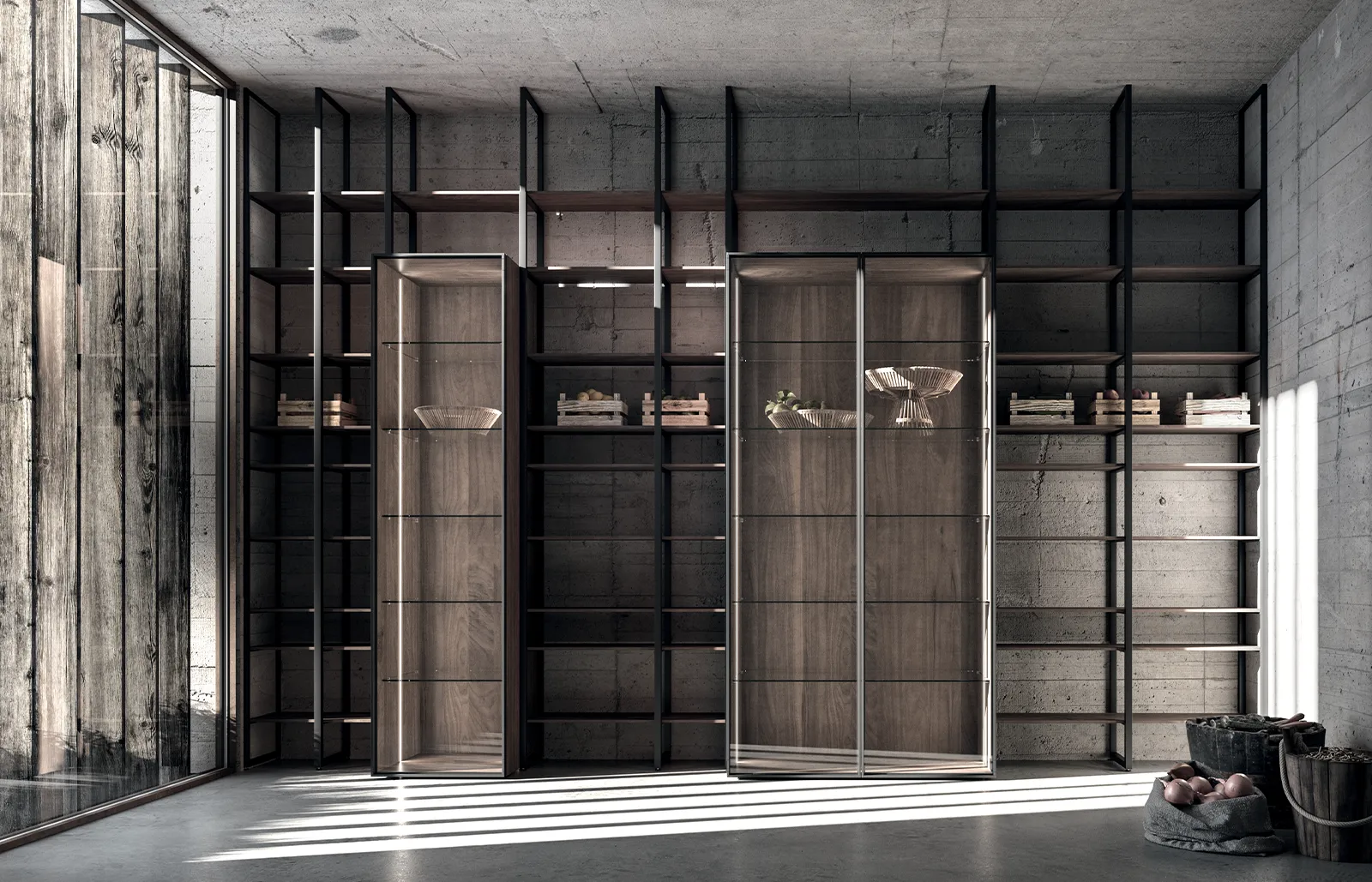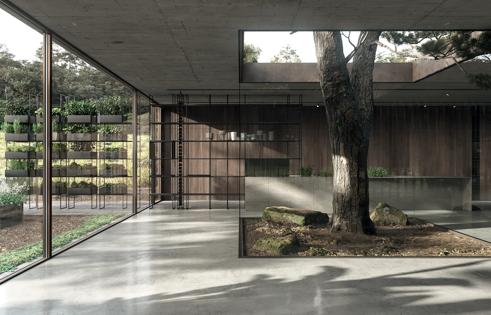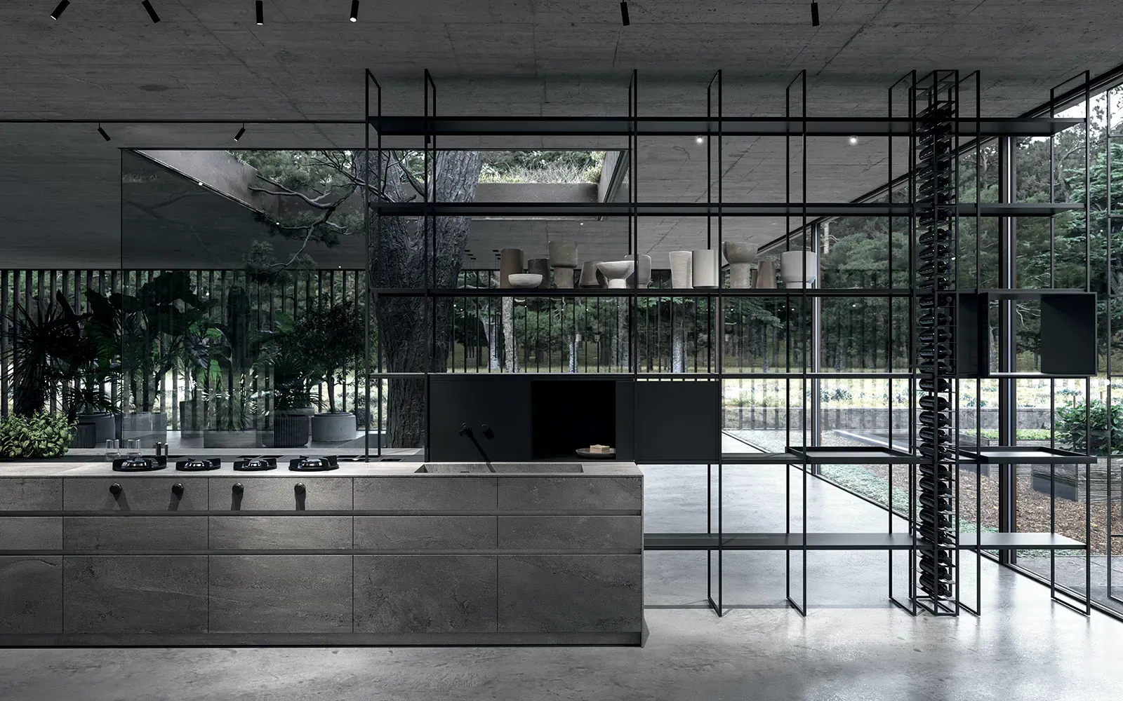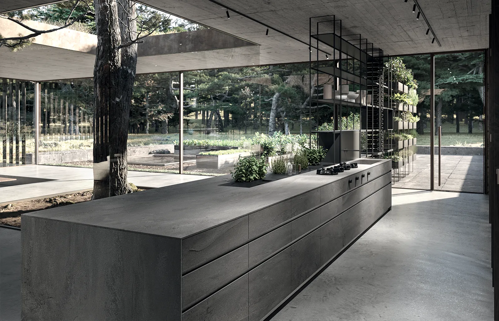 Nativia by The Cut was born with this mission in mind. To create an open environment where you can cook, have breakfast, work, study and nurture in the broadest sense by fostering exchanges among people but also among environments, from the living room and beyond, including outdoor spaces, thanks to a wireframe that is more than a simple kitchen component and turns into a vertical vegetable garden.