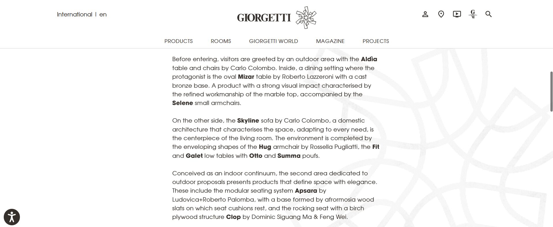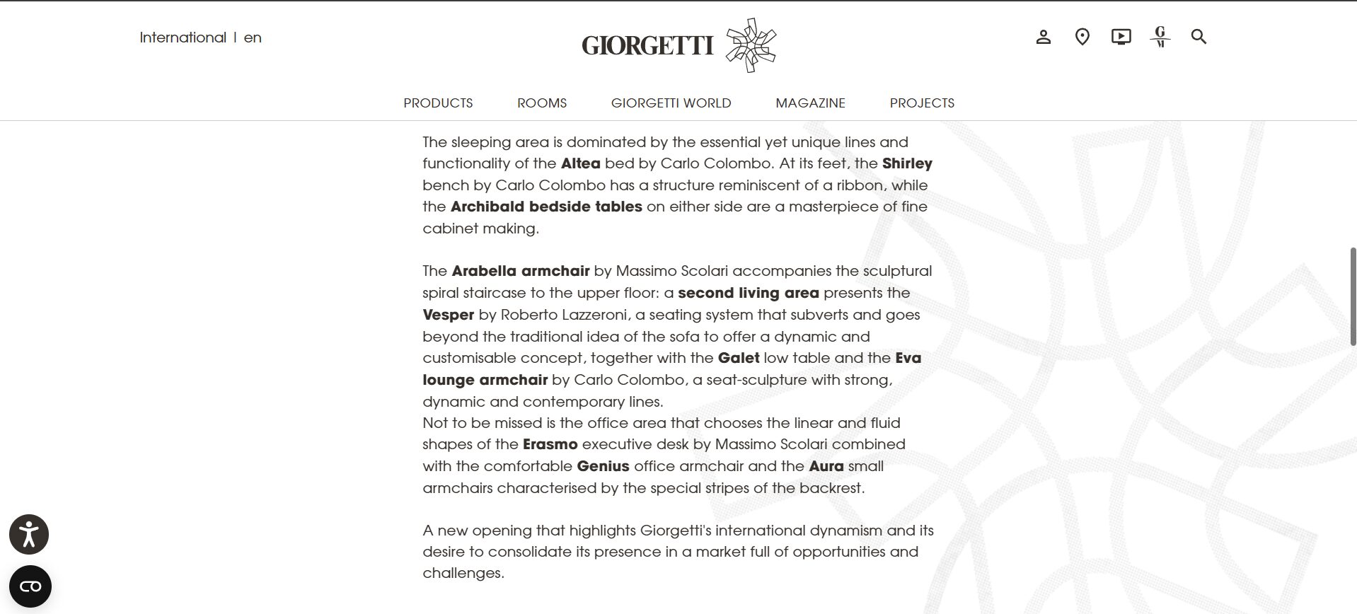 PRESSNews & PressBrowse our latest news, press releases, media coverage and archived articles. 2024 Profile 2022 Profile We Love Milano 2020 Profile 2019 Profile 2018 Profile NOVEMBER 2024HOTSPOT | GIORGETTI CAIRO SEPTEMBER 2024Giorgetti si espande in Nord Africa con un opening a Il Cairo April 2024Giorgetti magazine #4 April 2023Giorgetti Magazine #3 June 2022Giorgetti Magazine #2 September 2021Giorgetti Magazine #1 March 2023elbeit magazine JANUARY 2019Selections Cover 2019 JANUARY 2019Kitchen Hacks 2019 JANUARY 2018Selections Cover 2018 JANUARY 2018Kitchen Hacks 2018 JANUARY 2017Selections Cover 2017 JANUARY 2017Kitchen Hacks 2017 JANUARY 2016Selections cover 2016 JANUARY 2015selections cover 2015 JANUARY 2013Selections cover 2013 Previous Page1 Page2 Latest NOVEMBER 2024HOTSPOT | GIORGETTI CAIRO SEPTEMBER 2024Giorgetti si espande in Nord Africa con un opening a Il Cairo April 2024Giorgetti magazine #4 April 2023Giorgetti Magazine #3 June 2022Giorgetti Magazine #2 September 2021Giorgetti Magazine #1 March 2023elbeit magazine JANUARY 2019Selections Cover 2019 JANUARY 2019Kitchen Hacks 2019 JANUARY 2018Selections Cover 2018 JANUARY 2018Kitchen Hacks 2018 JANUARY 2017Selections Cover 2017 JANUARY 2017Kitchen Hacks 2017 JANUARY 2016Selections cover 2016 JANUARY 2015selections cover 2015 JANUARY 2013Selections cover 2013 Previous Page1 Page2 LatestSUBSCRIBE TO ART OF FORM NEWSLETTERPlease enable JavaScript in your browser to complete this form.SubmitSUBSCRIBE TO ART OF FORM NEWSLETTERPlease enable JavaScript in your browser to complete this form.Submit